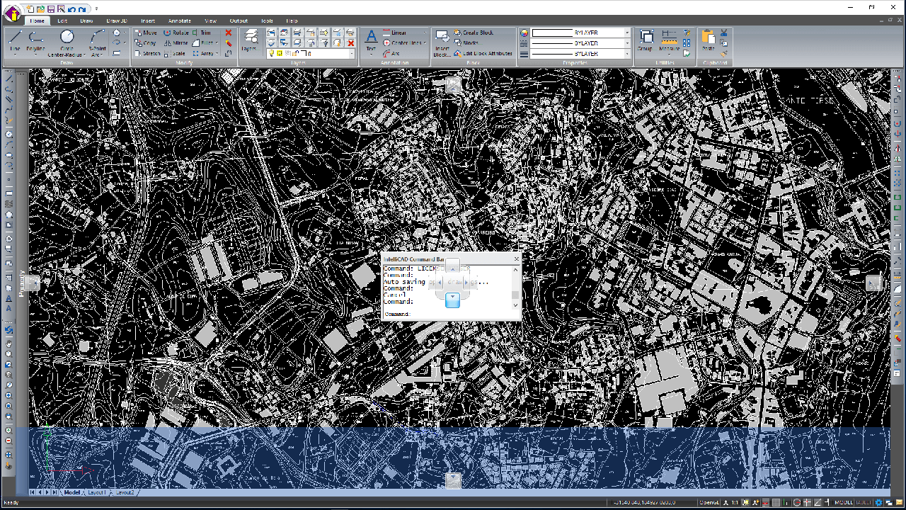 La barra di comando e' una finestra in cui puoi scrivere i comandi di IntelliCAD e visualizzare le risposte e i messaggi del programma. Di default la barra di comando mostra le ultime 3 linee del prompt, ma si puo' estendere per visulaizzare piu' linee di comando. Si puo' muovere e ridimensionare la barra di comando stessa con funzioni di Drag.