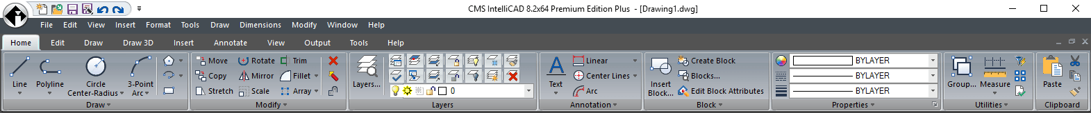 CMS IntelliCAD® supporta centinaia di comandi di AutoCAD® . Seleziona i comandi di AutoCAD® dai pull-down menus e dalle icone della toolbar, o digita la sintassi dei comandi AutoCAD® dal prompt della linea di comando - cosi' come ritieni opportuno. Tu potrai lavorare con la finestra di CMS IntelliCAD e con i suoi elementi in varie modalita'. Per esempio , potrai fare il display e il riarrangiamento delle toolbars, fare il display della barra di comando, e abilitare la status bar. Le toolbars e la command bar possono essere riposizionate ovunque sullo schermo o agganciate agli spigoli della finestra principale di IntelliCAD .