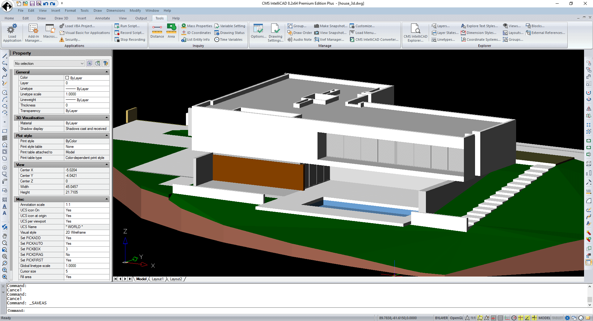 CMS IntelliCAD permette facilmente di creare progetti 3-D usando i 3-D drawing tools. Tu puoi vedere le hidden-line, le versioni shadate dei tuoi modelli 3-D o librerie esistenti 3-D con un semplice click .